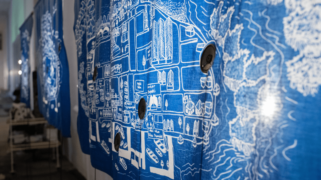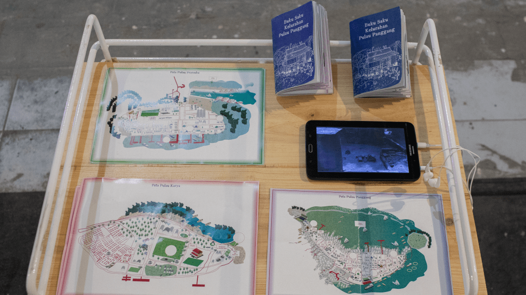 In another form, we also archived the voices and everyday moments of the Pulo people into a short documentary film that reflects on their daily life. Alongside that, we created an installation that presents an alternative route for historical tourism, completed with a soundscape made from recordings collected in Pulau Panggang Village.